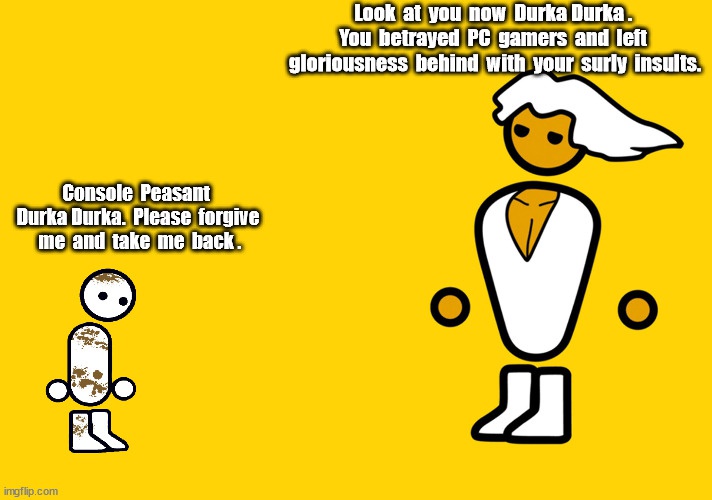 We’re going to have to ask you to surrender your PCMR card, video card and M&K. You are forever banished from our greatness and will forevermore wander through life as a console peasant with dirty spots on your face and clothes. Despised by all and trying to convince anyone who will listen to you that the human eye can’t see more than 30 fps anyway.