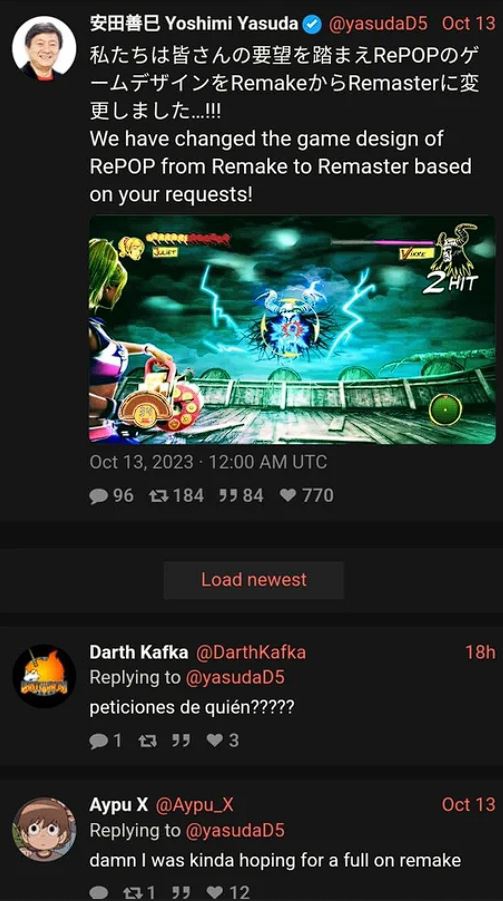 Dragami Games has also added a new RePOP mode, which uses a unique and colorful pop art-inspired art style for damage effects. This is an additional mode. In other words, the remake will also have an Original Mode with all the gore from the original version.