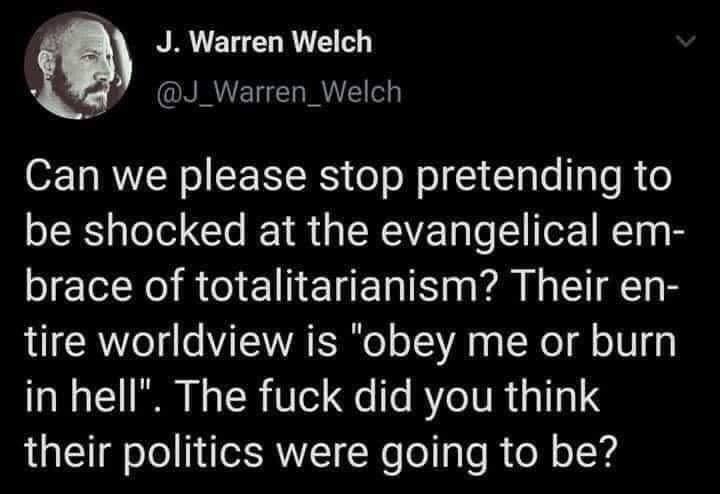 Lmao, we made so many concessions to tyranical rules that we now need to put qualifiers up front. Not defending the guy tough, people who compares current political parties to national socialists are dumb as hell.