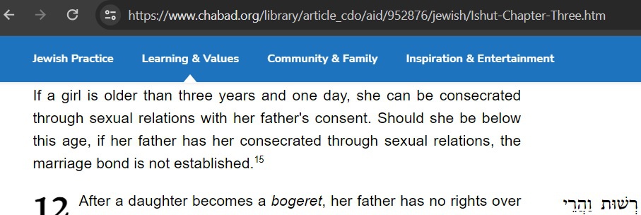 1. Ishut 3 verse 11 from Judaism's Chabad website which includes the original language. 3 year olds. This is why Shlomo here wants to groom kids with video games. It makes them easier to prey on. This is how you got kicked out of 100 countries while playing a victim. https://uploads.disquscdn.com/images/767dc47d2acfc58d5ed273629ad189e1385d9873be7d7f25892b25225a7ec3f4.jpg