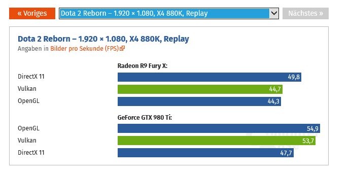 There are 2 games with support both: DX11 and Vulkan. So we can compare performance of API. Vulkan is good but it isn’t as fast as DX11.