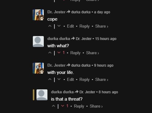 Imagine being so fragile that you think that telling you to cope with the failure of your life is a death threat.
