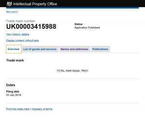 Creative Assemply has recently registered the “Total War Saga: Troy” trademarks to the UK government website. Of course it doesn’t confirms that their next game will be definitely set on Troy, especially when we have zero information regarding their next game. What we do know is that they are working on the third and final installment of the Warhammer series.