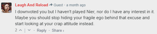 “I’m not even a fan, but I hate you anyway” Nier faqboys are SO predictable, this is not even the first time I get a comment saying EXACTLY the same: