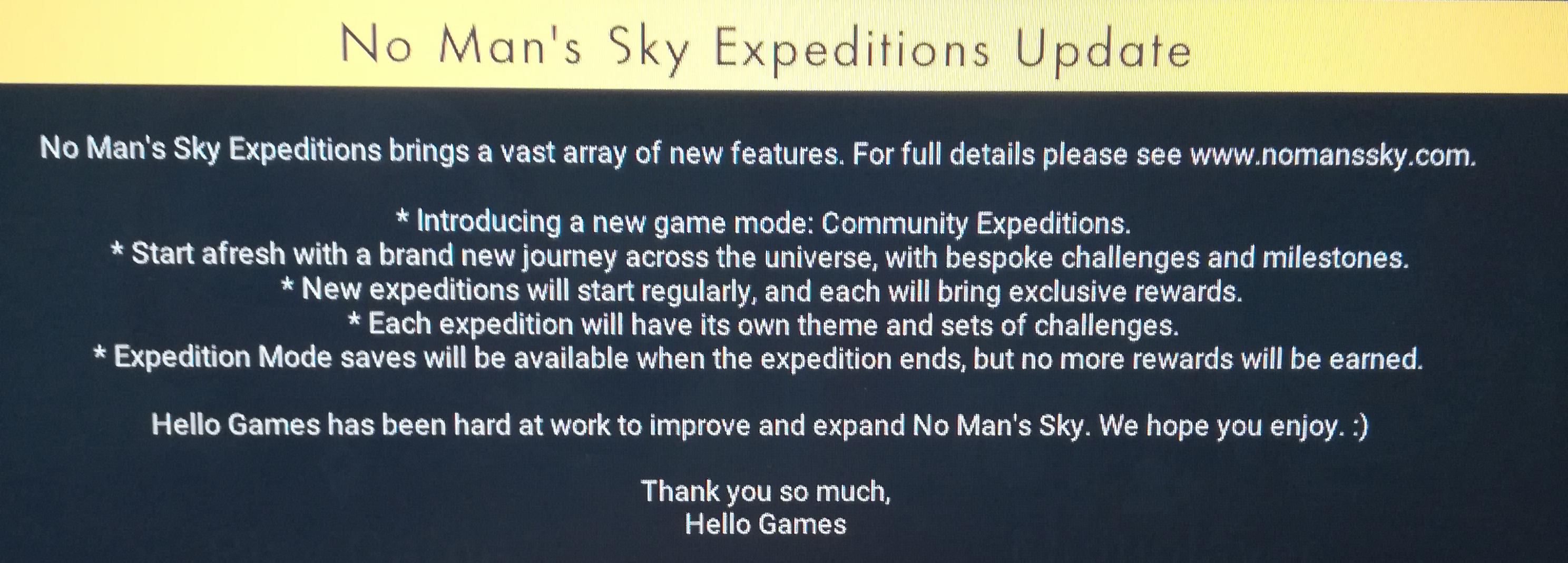Hello Games has just revealed the official release notes for No Man’s Sky Expeditions. This patch comes with a significant number of performance and loading optimisations, reducing initial load and warp times, improving texture loading and terrain generation speed, and removing some physics-related stalls that could occur. You can find its complete changelog here.