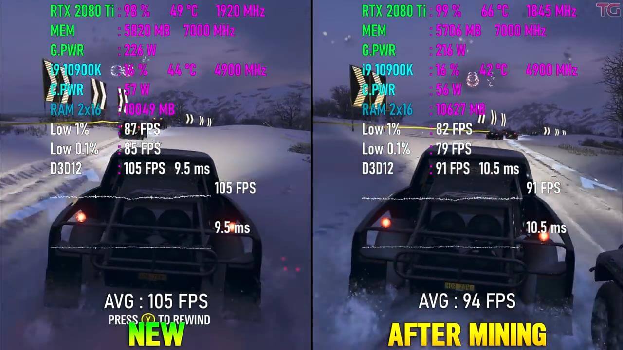 One exception was Forza Horizon 4 game, in which the mining card was actually 20% slower than the new card. So this does show that any GPU used for mining can deteriorate gaming performance, which seems obvious given how mining works. Though, there is still no hard and fast rule to this.