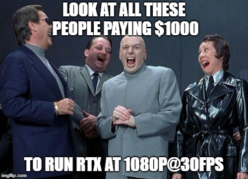 Passing on it entirely until the 3000 series, and they had better have it sorted by then, both price and performance, otherwise I’m just going to wait for AMD in the future. I’m content with my 1080ti, so none of that fanboyish crap like “gl waiting on AMD, you’re gonna have to go Nvidia lololol”.