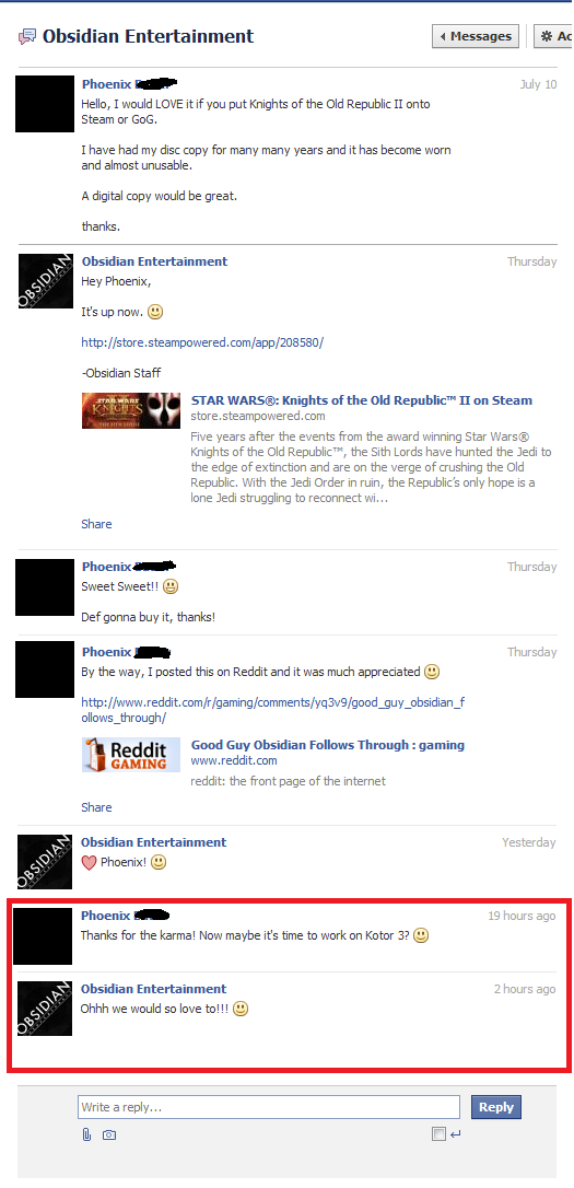 Reddit’s user ‘SlappyBag9‘ contacted Obsidian Entertainment and asked whether he could add KOTOR 2 to his Steam collection. Obviously, the user didn’t know that KOTOR 2 was released on Steam and Obsidian Entertainment replied and told him that the digital version was already available on Valve’s distribution service.