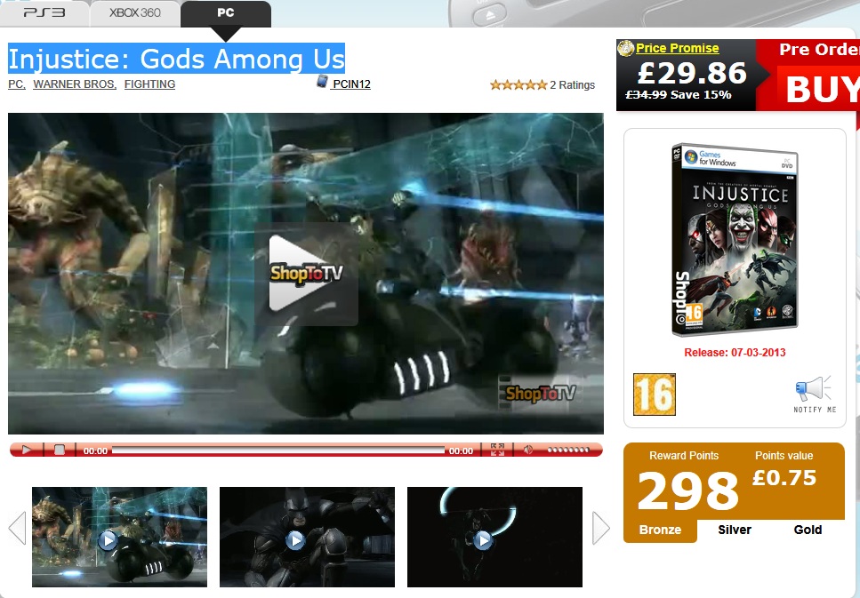 Now this is a nice surprise. Our reader Gianluca Manocchio has informed about an interesting entry on ShopTo. As we can see, this online store has listed Injustice: Gods Among Us for the PC, even though the game has been announced for X360 and PS3. Since NetherRealm has not confirmed anything – and since we know that they don’t give a damn about the PC platform – we advice you take it with a grain of salt. Funny thing is that there is also a PC packshot for it. We’ll contact NetherRealm and try to find out whether this is true or not. You can view below a screen-grab from that PC item.