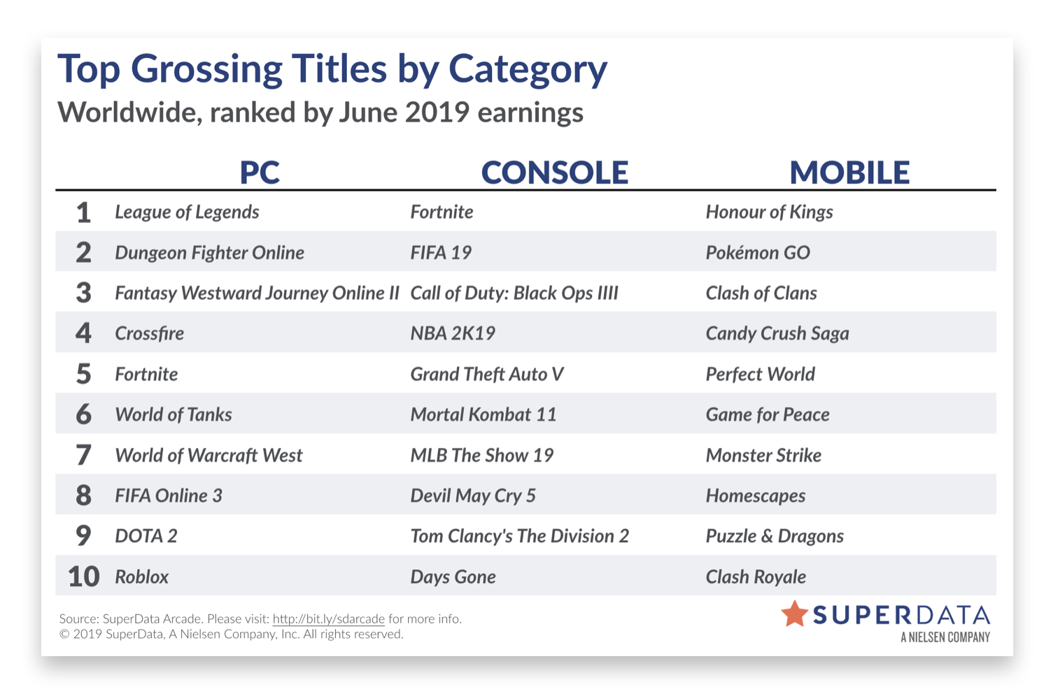 Last but not least, here are the world’s most popular digital games across PC, console and mobile for June 2019.