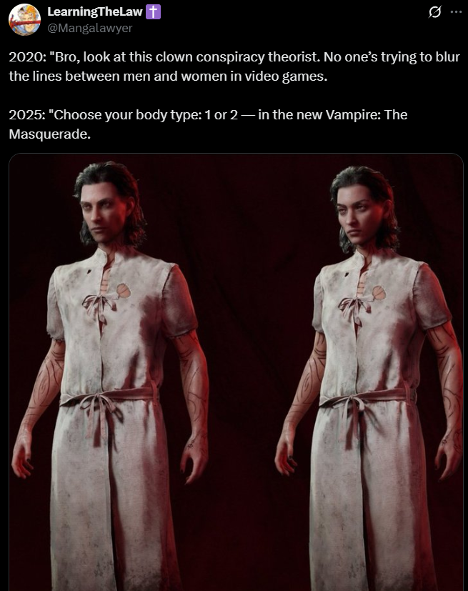 I'm one of these perverts who always associated vampires and sexy stuff, so if VTMB2 looks like it's populated by asexual non-binary freaks, I'm SO going to boycott this piece of crap.