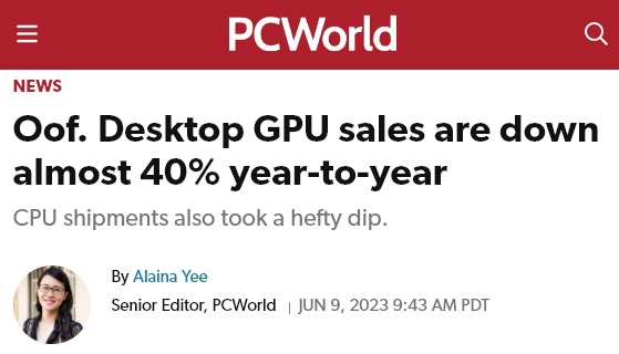 Who knows? Maybe next article will say – Sales are down 70%, perhaps Nvidia will finally wake up then? This BS cant continue. Nobody here is buying cards, we got 2 generation of cards just sitting on the shelves, its insane. If they were to release 5060-5090 cards, nobody will buy these either, if the prices dont change BIG time.