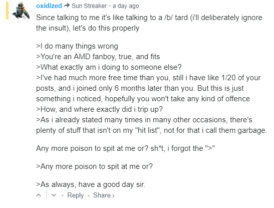 Dude, just a few days ago you labelled me as a butthurt AMD fanboy and “poison”, you cannot be serious with that spiel…