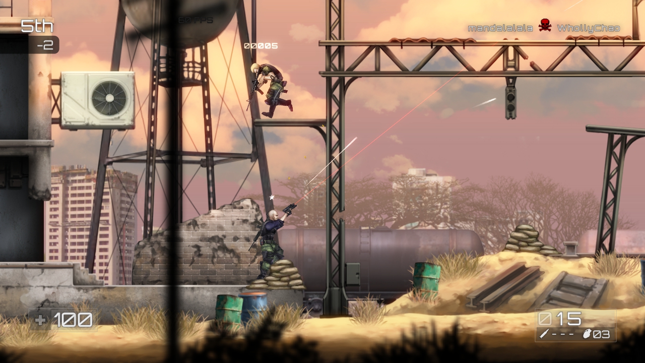 Discord Games released four new screenshots and the teaser trailer for their 2D multiplayer platform game, Take Arms. Take Arms will be released on XBLA, will support up to 8 players and promises to deliver fast action at 60fps with anime-style HD graphics. The game is scheduled for a late Summer release and will cost 240 Microsoft Points. Players can choose from three different classes; The Striker, the Destroyer and the Grunt. Check out the screenshots and its teaser trailer after the jump.