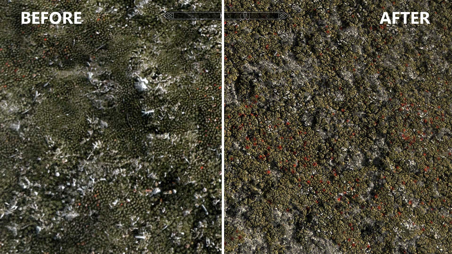 Z4G4 has changed many (80%) landscape textures with high definition textures to 2048x2048px resolution but tried to stay faithful to the original. His next version (v1.0) will have superceded all textures and I’ll add the 1024x1024px resolution.