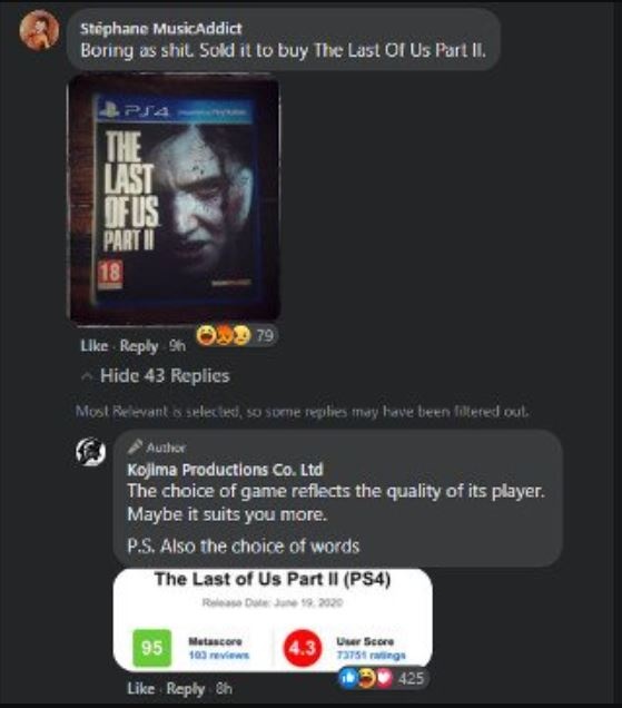 Fun fact: Neil jealous to hideo kojima, so hideo kojima roasted The last of us part 2