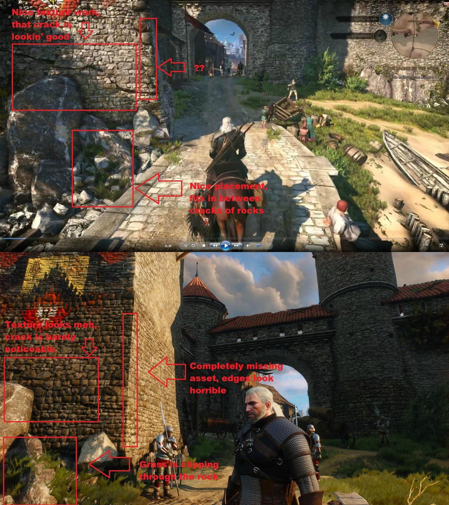 To be fair the release version does have more grass but its just placed on a rock for whatever reason.