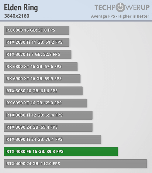 TechPowerUp reports that the RTX 4080 is slower by 20% in Elden Ring than the RTX 4090. This means that it’s faster by 17% than the RTX 3090Ti. The RTX 4080 is also slower than the RTX 4090 by 12% and 18% in Far Cry 6 and Assassin’s Creed Valhalla, respectively.