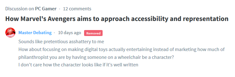 What probably happened is they feared that there would be too many comments that didn’t fall in line with PCGamer’s Politically Correct stance so they shut down the comment section.