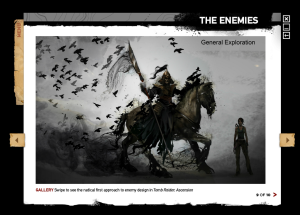 We seriously love this kind of leaks. DevianArt’s Tomb-Raider-Empire has leaked some interesting artworks and a video from an early build of the newly released Tomb Raider game, showcasing some of the enemies and abilities of Lara’s that were not included in the final build. According to the artworks and the leaked video, the new Tomb Raider game was originally meant to be called Tomb Raider: Ascension, featured demons and giants similar to those of Shadows of Colossus, and Lara could horseback-ride during a mission. Moreover, a little girl was meant to be included as a gameplay companion, and there was a flamethrower as one of Lara’s weapons. Sounds closer to a Resident Evil/Shadow of Colossus mix than what we got, right? Kudos to NeoGAF user ‘Larson Conway’ for spotting it. In other news, our Performance Analysis will go live tomorrow so stay tuned for it!