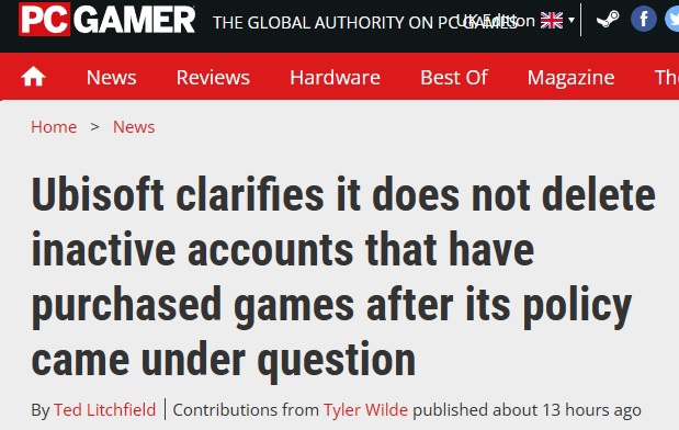 I’m no fan of Ubisoft or the reliance on launchers etc, but this article is alarmist and wrong: Ubisoft clarified to say that the only accounts that get shut down are ones with no games on them. It’s actually a legal requirement for them related to data retention laws.