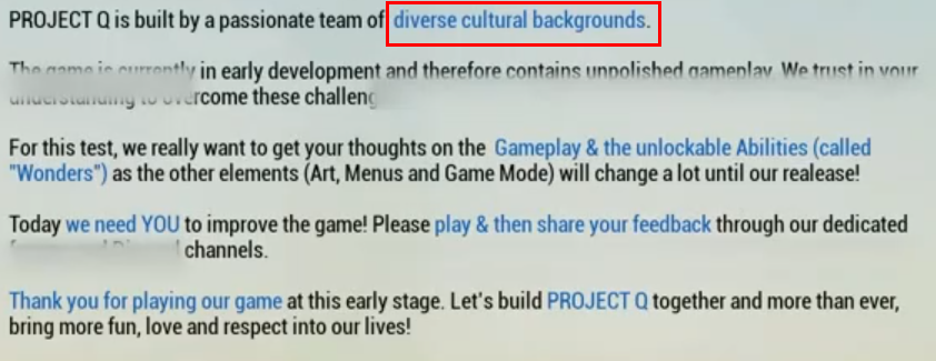 I remember a similar statement everytime i booted up my pirated copy of the first Assassin’s creed… something to do with developed by a team of multiple beliefs, religions and backgrounds, later changed to multiple genders and seksual orientations… this one is a watered down version.