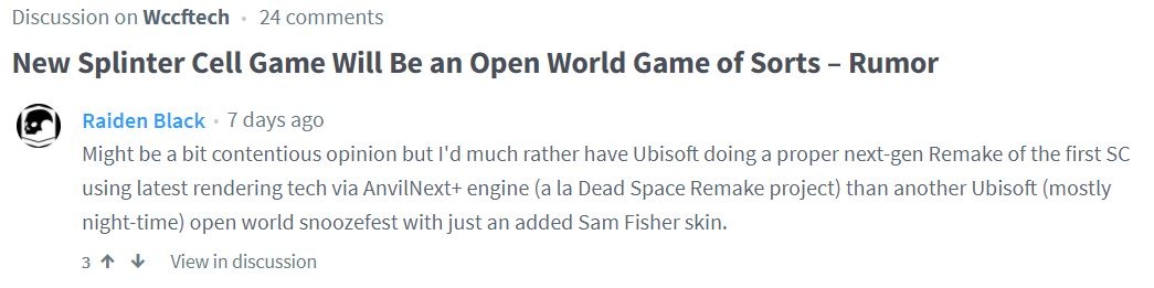 I was just assuming this remake approach the other day in a Splinter Cell article.