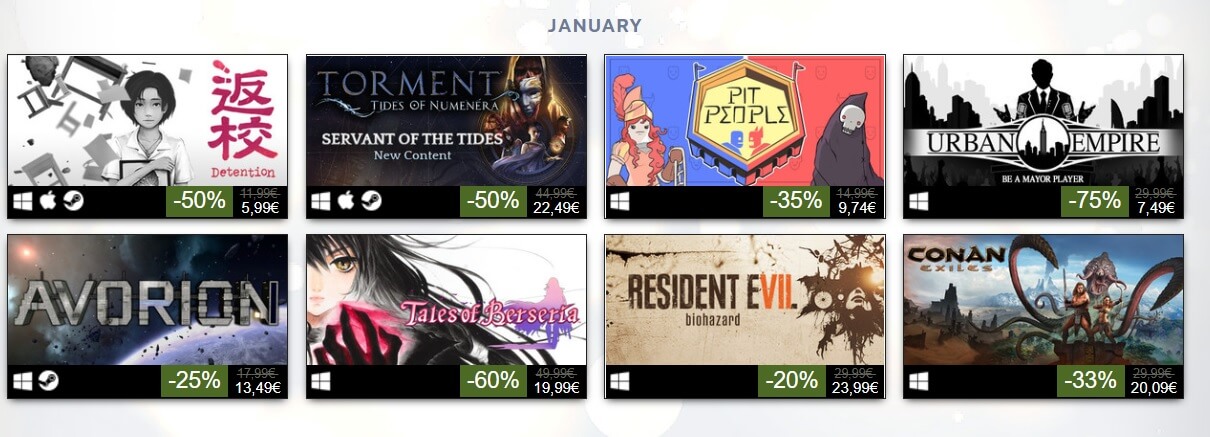 As said, Valve has also revealed the top new releases of 2017. In January 2017, the top new releases were Resident Evil 7, Detention, Torment: Tides of Numenera, Pit People, Urban Empire, Avorion, Tales of Berseria and Conan Exiles.