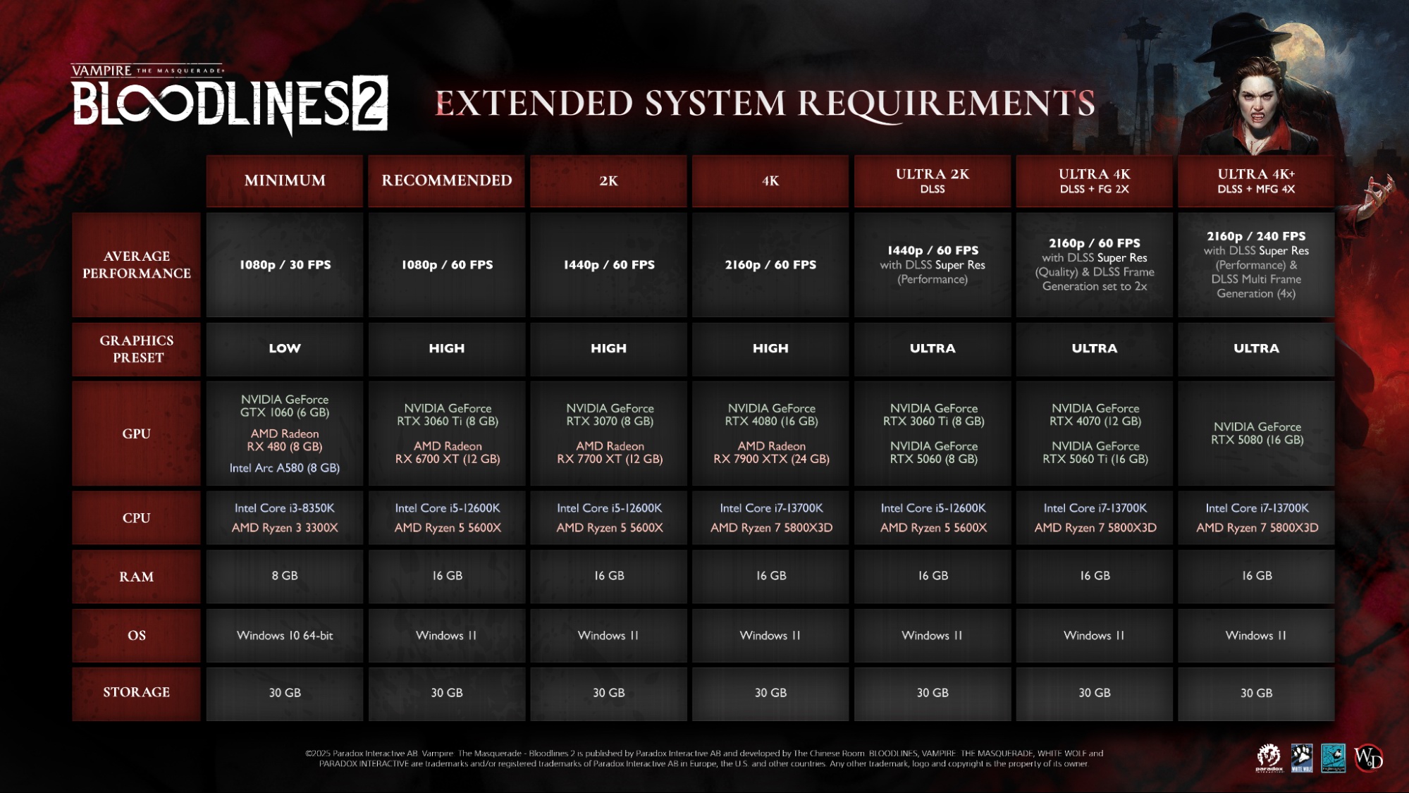 38 thoughts on “Vampire: The Masquerade – Bloodlines 2 Gets Final PC Requirements”