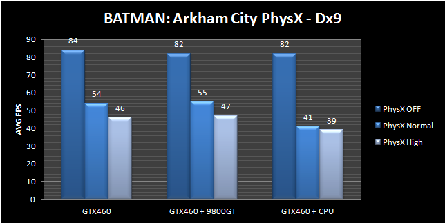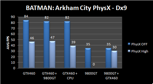 By now you must have already heard that the DX11 mode of Batman: Arkham City is bugged. However, things are not looking good even for those that want to enjoy Rocksteady’s latest offering with Nvidia’s PhysX effects. Guru3D’s user ‘MfA’ shared some interesting graphs that showcase an enormous performance hit when PhysX effects are enabled. This is something we’ve discussed in the past as Batman: Arkham City doesn’t take advantage of the PhysX SDK 3.0 and MfA’s graphs show exactly what is wrong with all previous PhysX SDK versions.