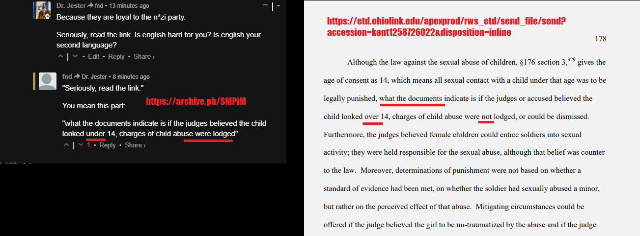 2. He is not a na*i or a stormcuck to think of those things. N*zi Germany was a heaven for ped*, inc*st, rap* and more. So, it is safe to say the user might be right about you.