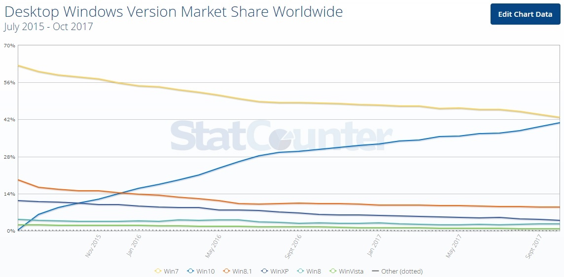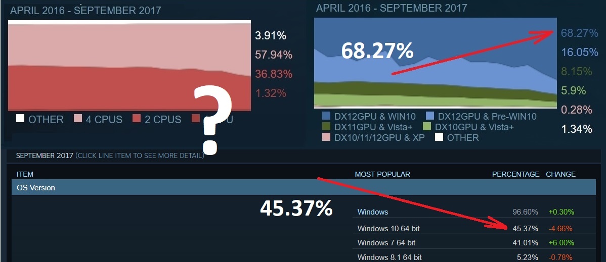 1. Gamers not = to total marketshare. Example my elderly mother took one look at Win 10 and said NOPE. Steam survey is probably a more accurate demographic.