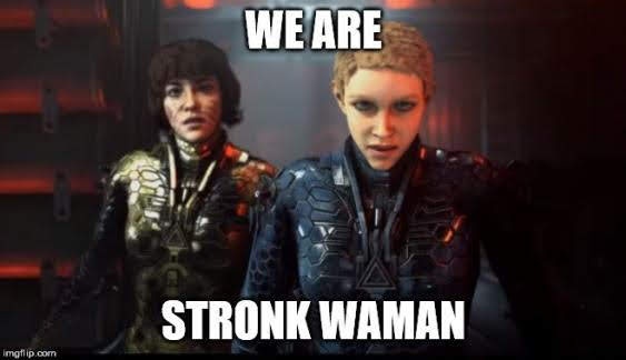 1. the entire trailer was a cringefest made by dorks and you think wammen is the problem…i mean fck its a wolfenstein game without bj set in the 80s with retrowave and coop made by dishonored devs and you think the problem is the wammen?