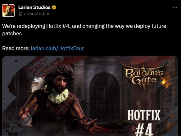 Larian Studios released earlier today Hotfix 4 for its highly acclaimed RPG, Baldur’s Gate 3. According to the changelog, Hotfix 4 resolves some crashes.