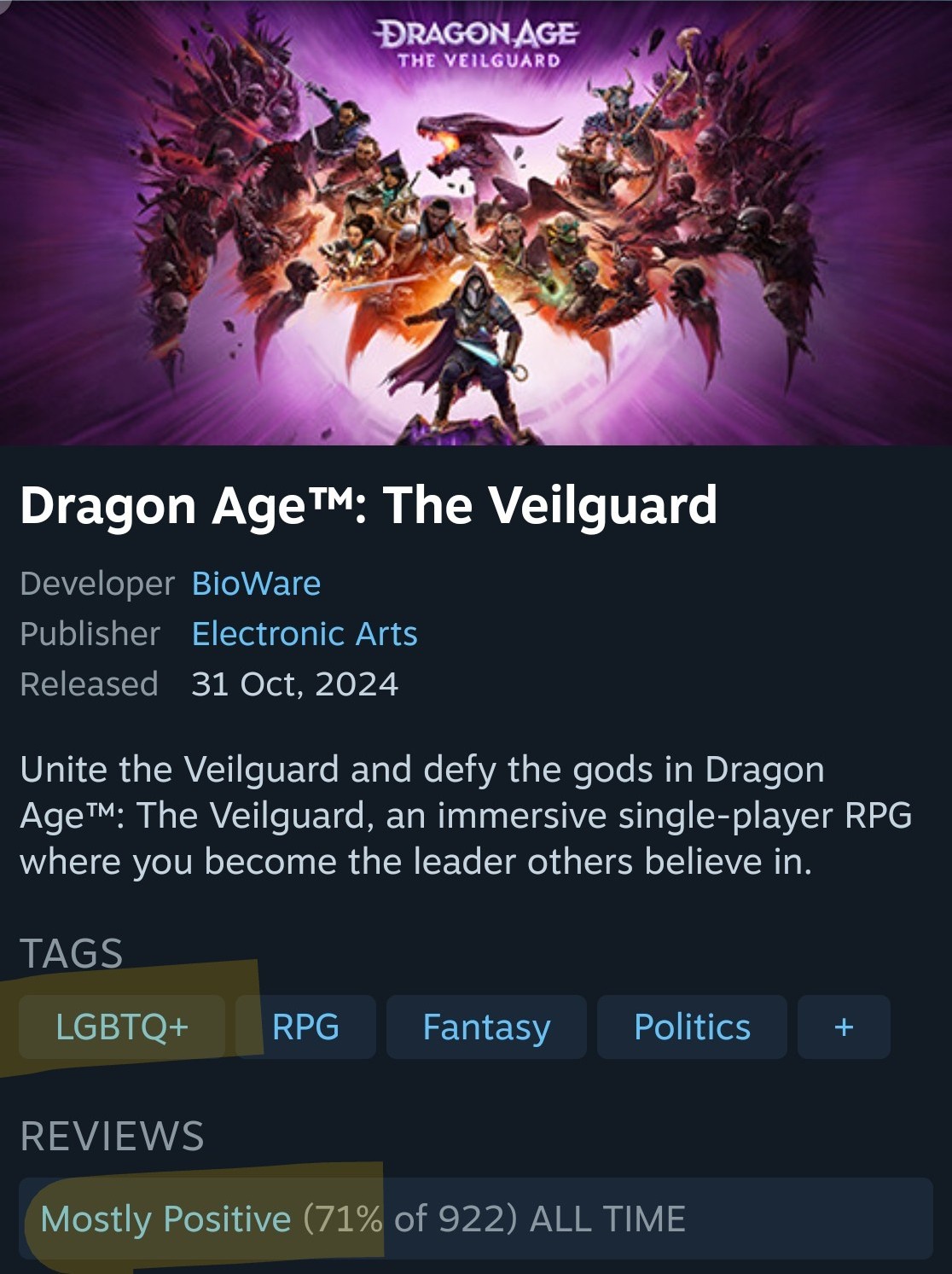 1. No one lied, everyone knew in ample time that the game is a woke pile of trash. This has been talked about for quite sometime. But believe whatever you want man, you'll see what the fruits of this veilguard will bring. Ain't gonna argue with none of you, just watch what happens next.