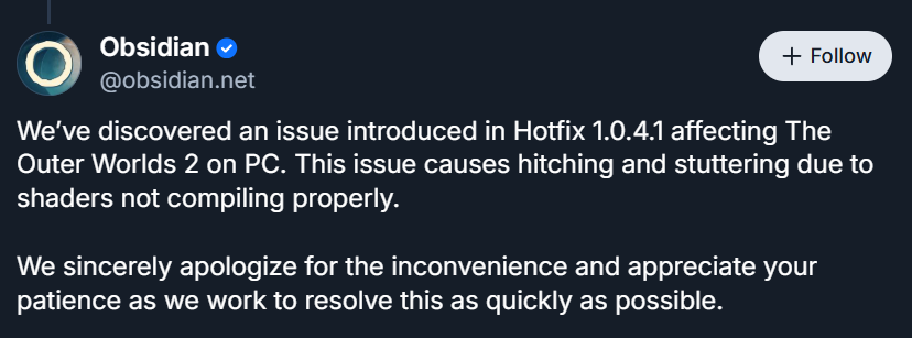 The Outer Worlds 2 Hotfix 1.0.4.1 Release Notes