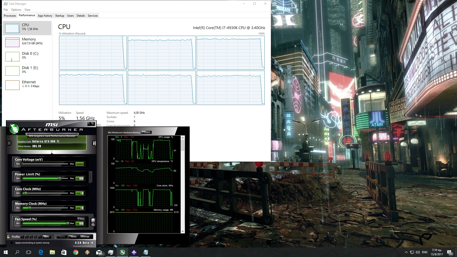 Our simulated dual-core system ran the game with an average framerate of 55fps with Hyper Threading disabled, and with 72fps with Hyper Threading enabled. As such, we strongly suggest owners of modern-day dual-core CPUs to enable Hyper Threading in this particular title. On the other hand, our simulated quad-core and our six-core systems ran the testing area with an average framerate of 92fps (when Hyper Threading was enabled) and with 94fps (when Hyper Threading was disabled). What’s crystal clear here (and as we can see in the screenshot above) is that we were CPU limited as our GPU was not used to its fullest. We don’t know what exactly is going on here, however it’s pretty obvious that the game would benefit from some additional optimization tweaks.