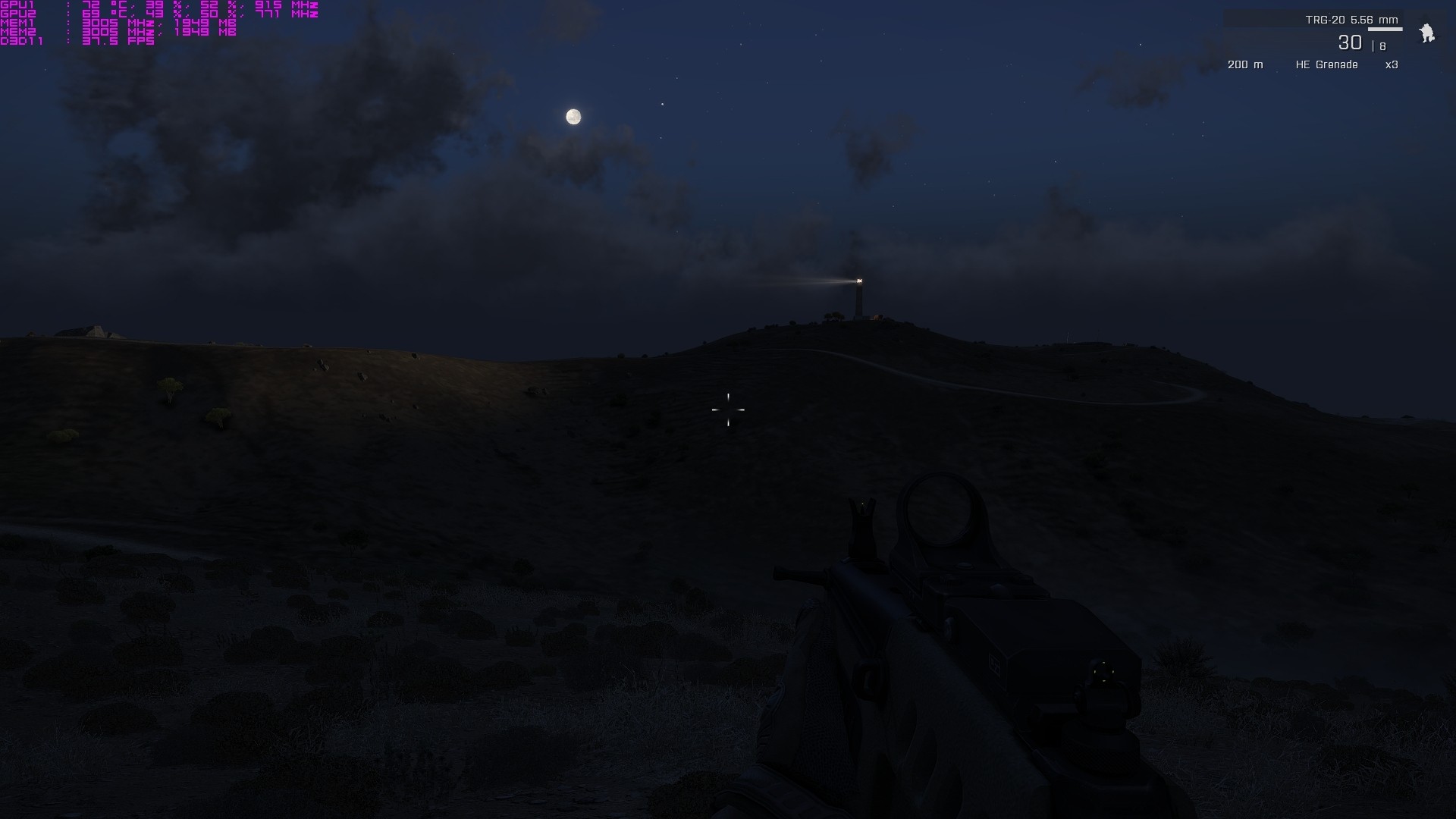 As always, we used an overclocked Q9650 (4Ghz) with 4GB RAM, an Nvidia GTX690, the latest version of the GeForce ForceWare drivers and Windows 7-64Bit. As we discovered in our Alpha Performance Analysis, SLI scaling is great in ArmA 3 – provided you are not CPU limited. At a really high resolution (3200×1800) our GPU was pushed to its limits, with 98% usage in both of our GPU cores. This clearly proves that Nvidia has done a great job with the game’s profile, so there is no need to mess around with other third-party tools in order to find other SLI compatibility bits.