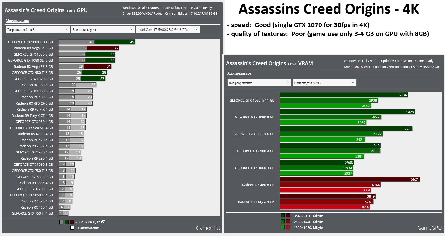 Performance is good (even in 4K). But there is a big problem with textures. Game use low quality textures which use only 3-4 GB even on fast graphics cards with 8 GB or 11 GB. So half of available video memory is unused even on cheap cards like RX 480.