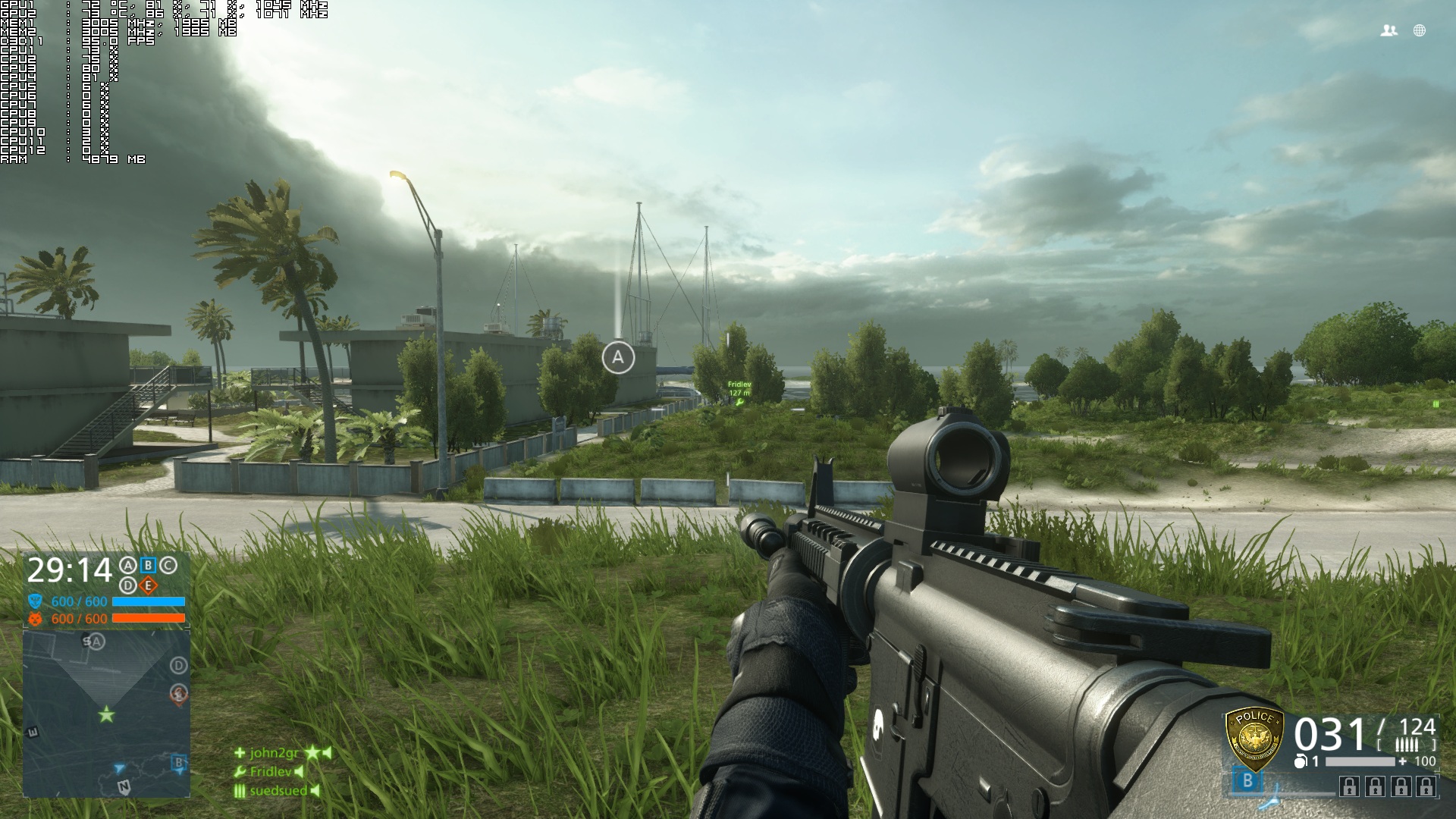 Just letting you know that currently performance is hindered by a punkbuster issue which is causing cpu spiking. You’ll see it by enabling PerfOverlay.DrawGraph 1 in game on the console. Find a server with punkbuster off and you’ll see no more cpu spiking and a big performance increase.