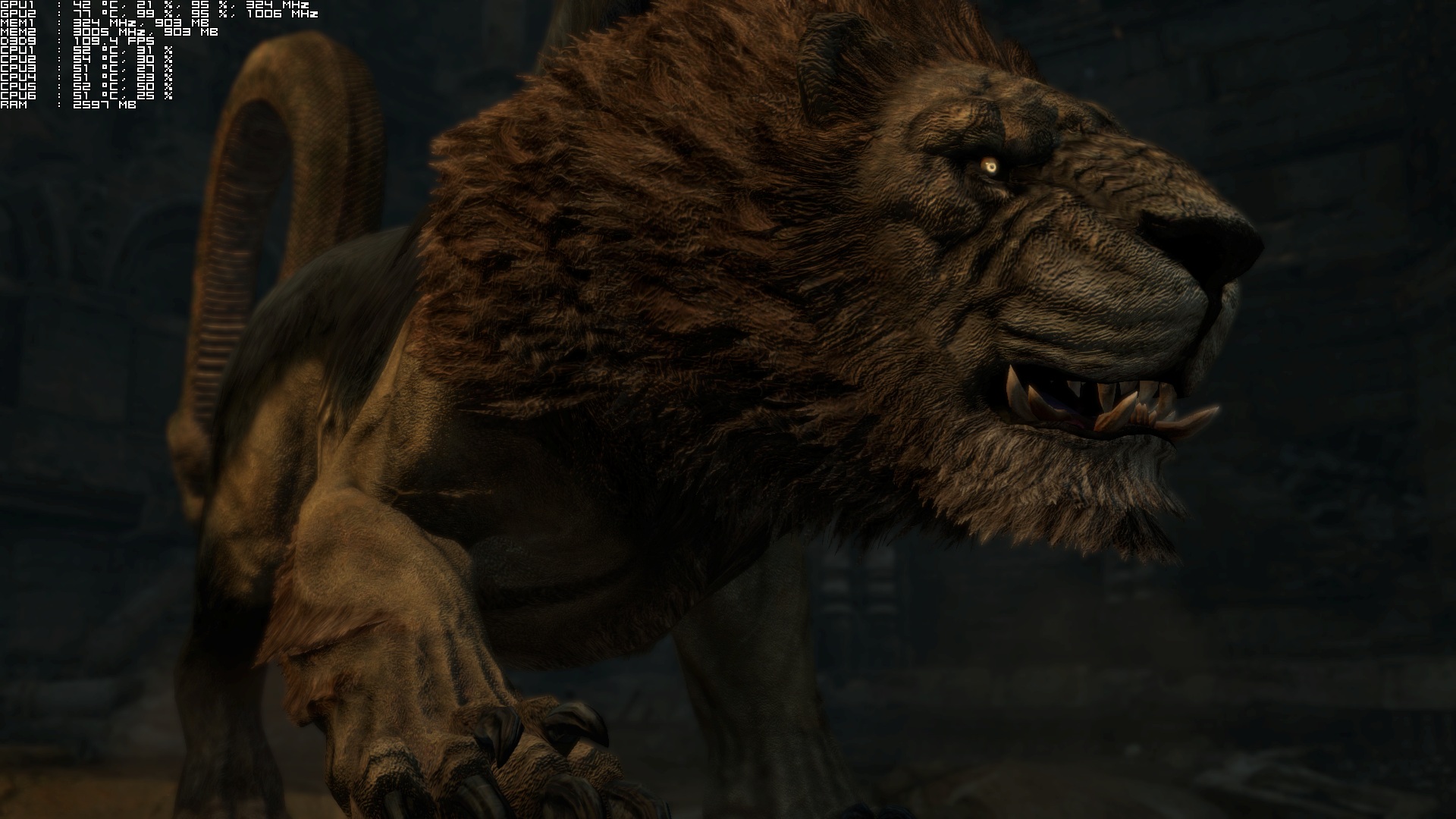Regarding the game’s GPU requirements, Capcom recommends an NVIDIA GTX760 or an equivalent card. And we are happy to report that this recommendation is spot on. Due to the lack of an SLI profile, our GTX690 performed similarly to a GTX680 (that is slightly faster than the GTX760). And while there was one scene in which our framerate dropped at 60fps (in the prologue when you first encounter the dragon), the game ran with constant 70fps at 1080p with max settings.