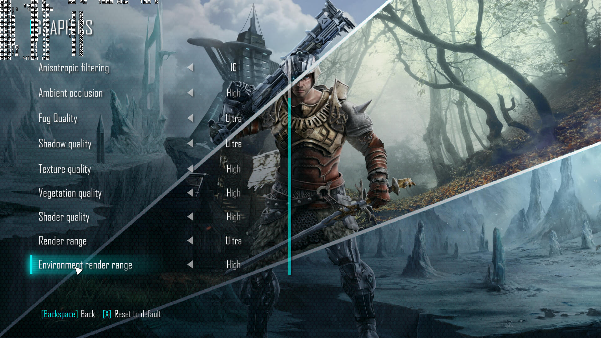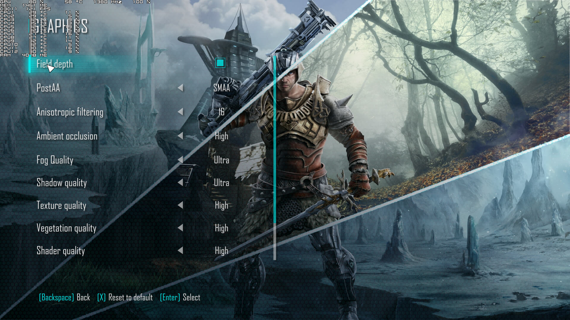 Piranha Bytes has included a few graphics settings to tweak. PC gamers can adjust the quality of Anti-Aliasing, Anisotropic Filtering, Ambient Occlusion, Fog, Shadows, Textures, Vegetation, Shaders, Render Range and Environment Render Range. There are also options to enable/disable Field Depth, and there is also a resolution scale setting.
