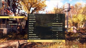 Bethesda has included a few graphics settings to tweak. PC gamers can adjust the quality of Textures, Water, Lighting, Shadows and Shadow Distance, and there are sliders for Actor Fade, Item Fade, Object Fade and Grass Fade. Now while there isn’t any FOV slider, gamers can tweak it via the “Fallout76Custom.ini” configuration file.