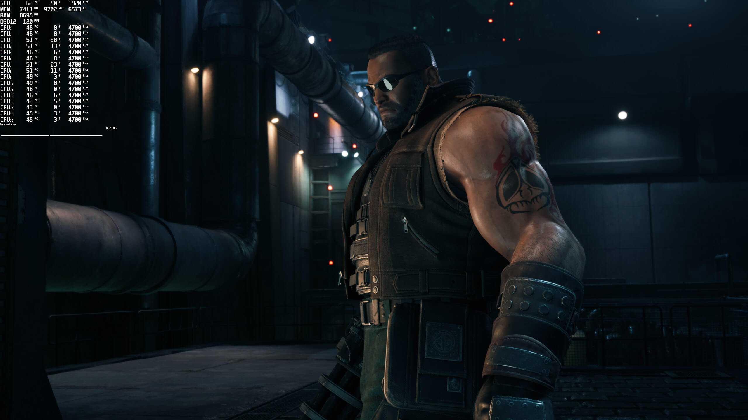 Contrary to Final Fantasy XV, Final Fantasy 7 Remake does not feature any in-game benchmark tool. For our GPU benchmarks, we used the first area in Chapter One. For our CPU benchmarks, we used the first area in Chapter Two (which has a lot of NPCs on screen). We also used the Dynamic Resolution Disabler Mod which is a must for gaming at higher framerates at native resolutions.
