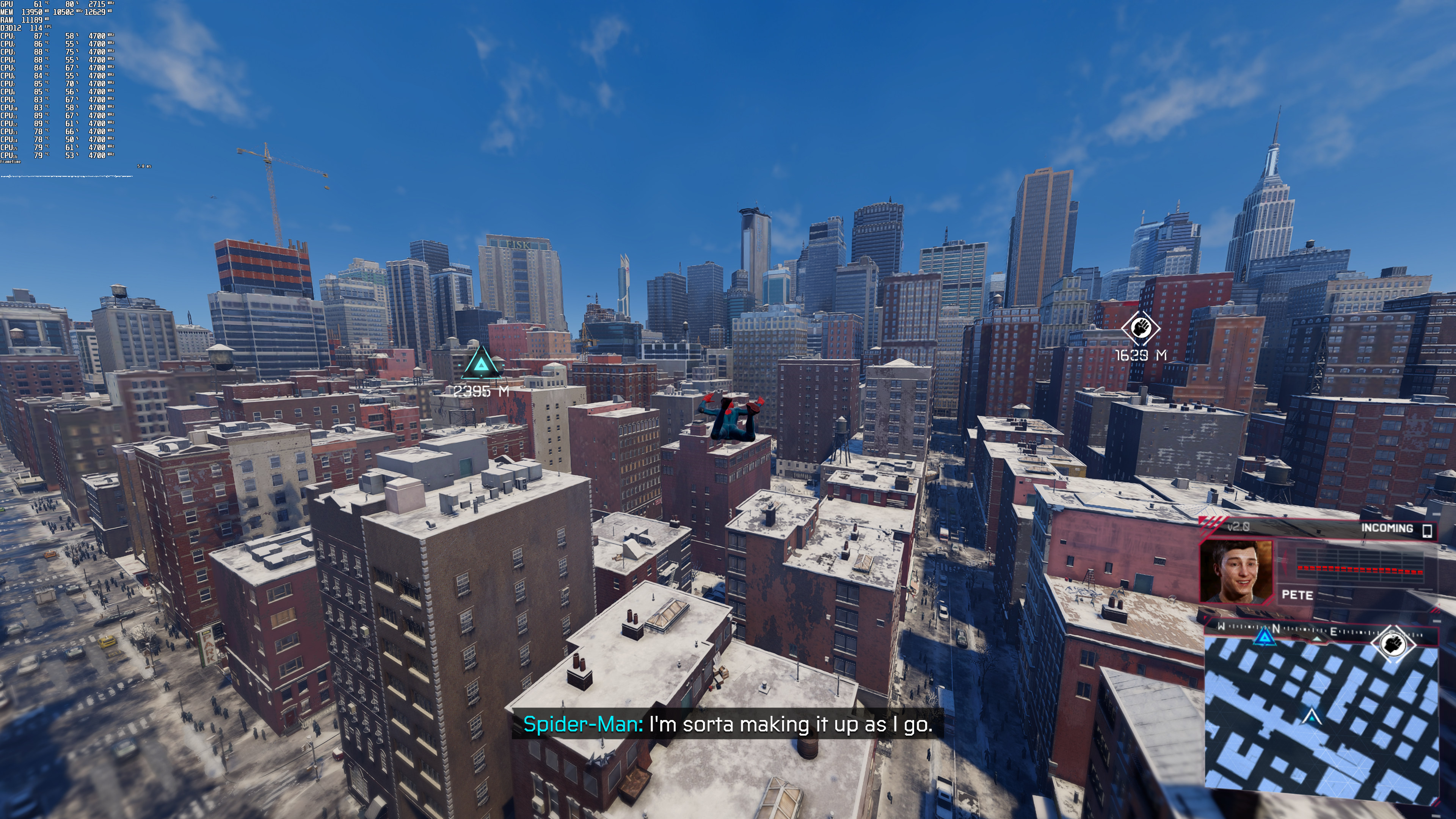 Marvel’s Spider-Man: Miles Morales does not feature any built-in benchmark tool. Therefore, we benchmarked a populated area after the game’s first/prologue mission. Our benchmarking scene appeared to be stressing both the CPU and the GPU, which is ideal for our tests.