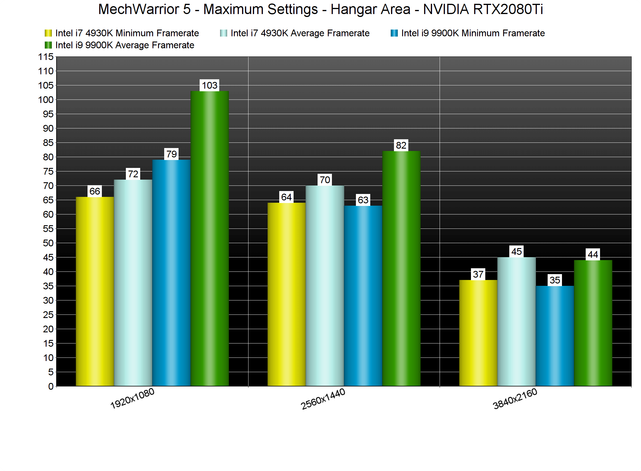 From the looks of it, MechWarrior 5: Mercenaries does not take advantage of more than four CPU cores/threads. On the other hand, the game appears to rely heavily on CPUs with better IPCs. As such, there were some noticeable performance differences between our i7 4930K and our i9 9900K. Still, even that older CPU was able to achieve a 60fps experience at both 1080p and 1440p.