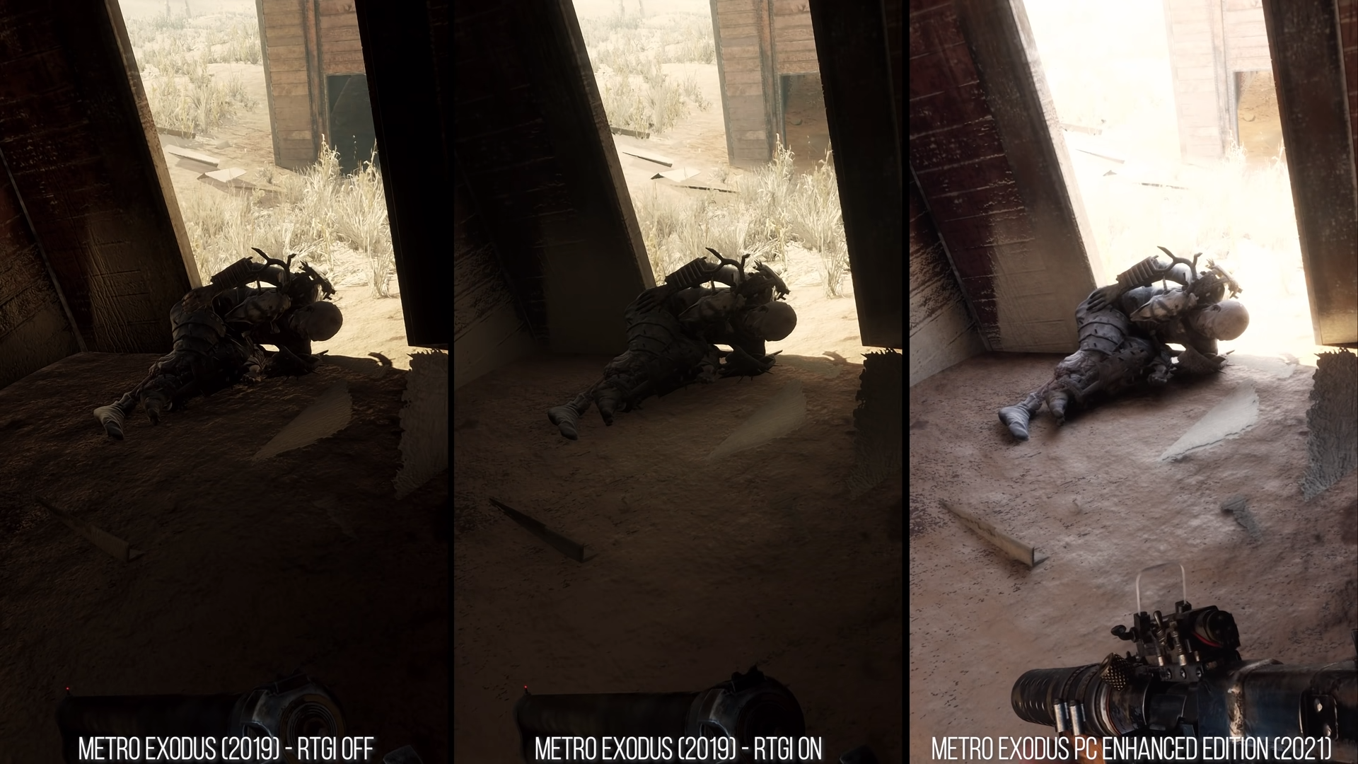 Kingdom Come and Crysis Remastered have fairly sophisticated GI but there’s no competition for Metro Enhanced, it’s on another level. Metro’s GI is precise enough to give you indirect shadows (shadows of indirect lighting) and it updates much faster. In Crysis Remastered you can see a big lag when, let’s say, a roof is removed and light comes into a hut. And Kingdom Come’s lighting is rather “flat” for some reason. They must have messed up something with the parameters.