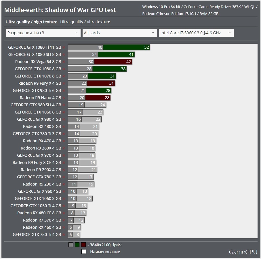 Due to the game’s inability to scale – and take advantage of multiple CPU cores – we were CPU limited on pretty much all systems. Despite that though, Middle-earth: Shadow of War does not require a high-end CPU for 60fps. That is of course when your CPU has a pretty good IPC performance. We’ve heard some complaints from Ryzen owners and there is a high chance they are CPU limited due to these scaling issues.