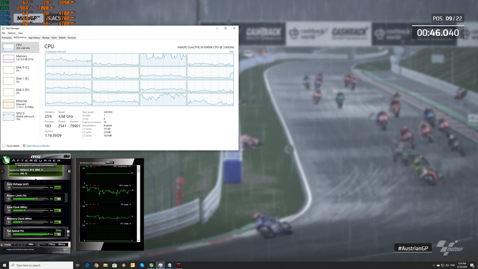 In order to find out how the game scales on multiple CPU threads, we simulated a dual-core, a quad-core and a hexa-core CPU. And, thankfully, MotoGP 20 does not require a powerful CPU for gaming at 100fps. As we can see, our simulated dual-core system (with Hyper Threading enabled) was more than enough to run the game.