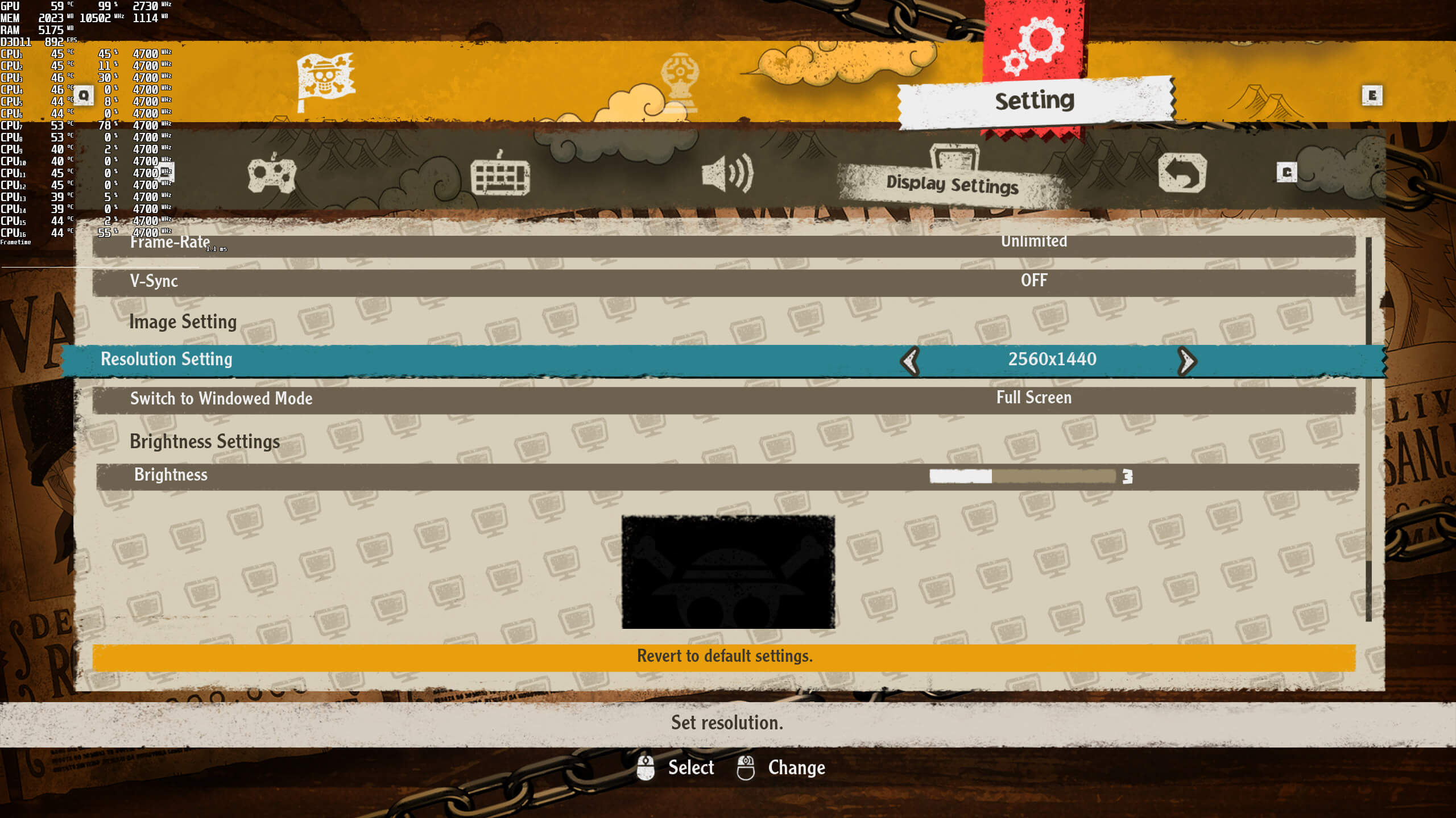 One Piece Odyssey does not require a high-end PC system. At 1080p/Max Settings, we were able to get a minimum of 150fps on a simulated dual-core system. In short, there wasn’t any point to simulate other CPU configurations as the game can run with more than 150fps on a huge range of CPUs.